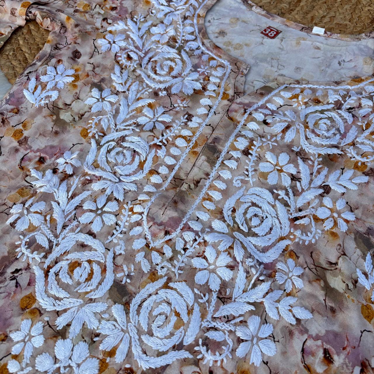 Elegant Soft Rayon Rose work Lucknowi Chikankari Kurti 💕