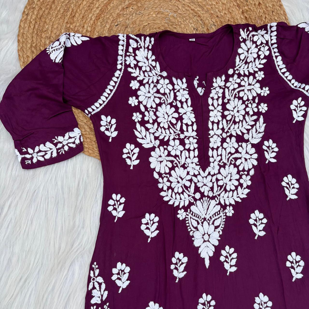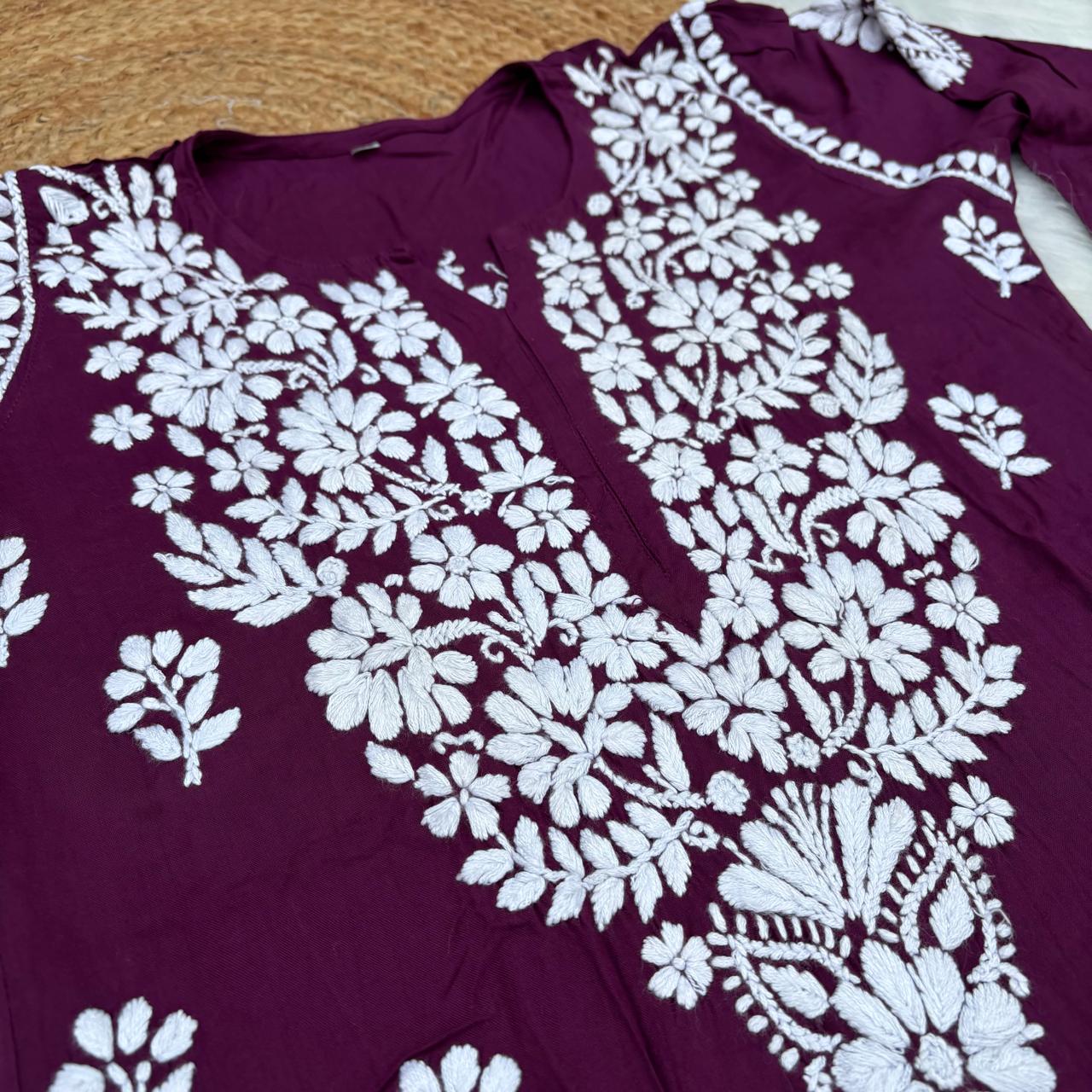 Maysa Soft Rayon Chikankari Kurti - Wine Colour