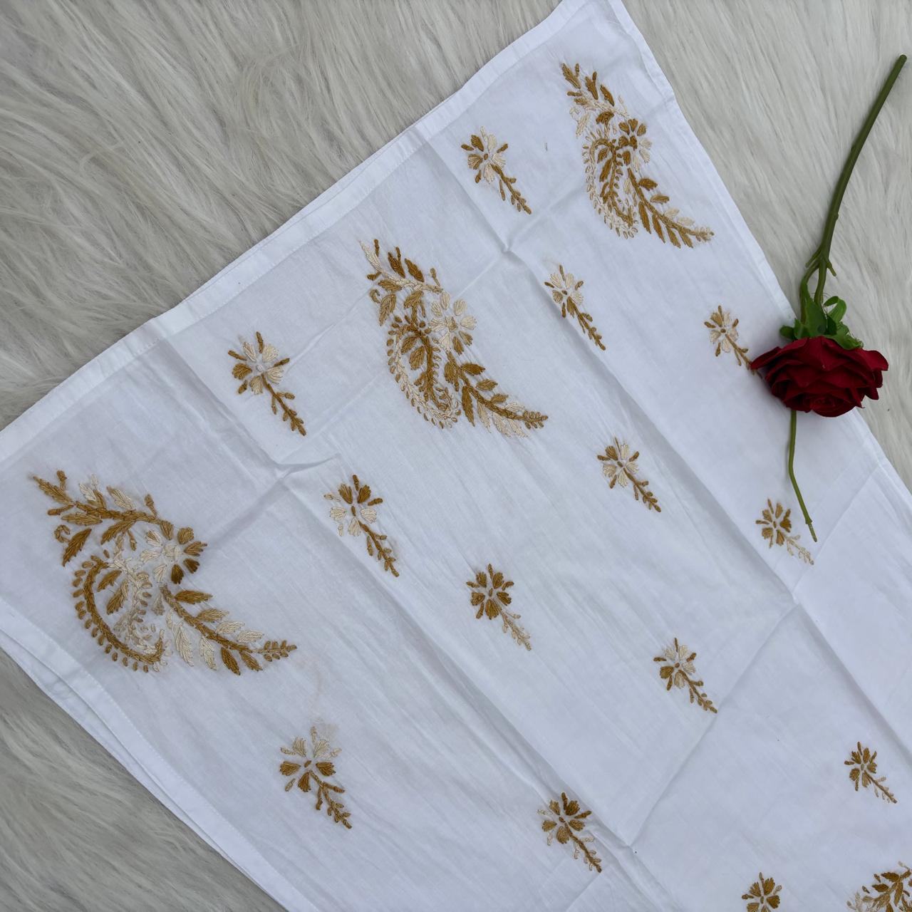 Chiffon Chikankari Dupatta With Qureshia Lace - White Color
