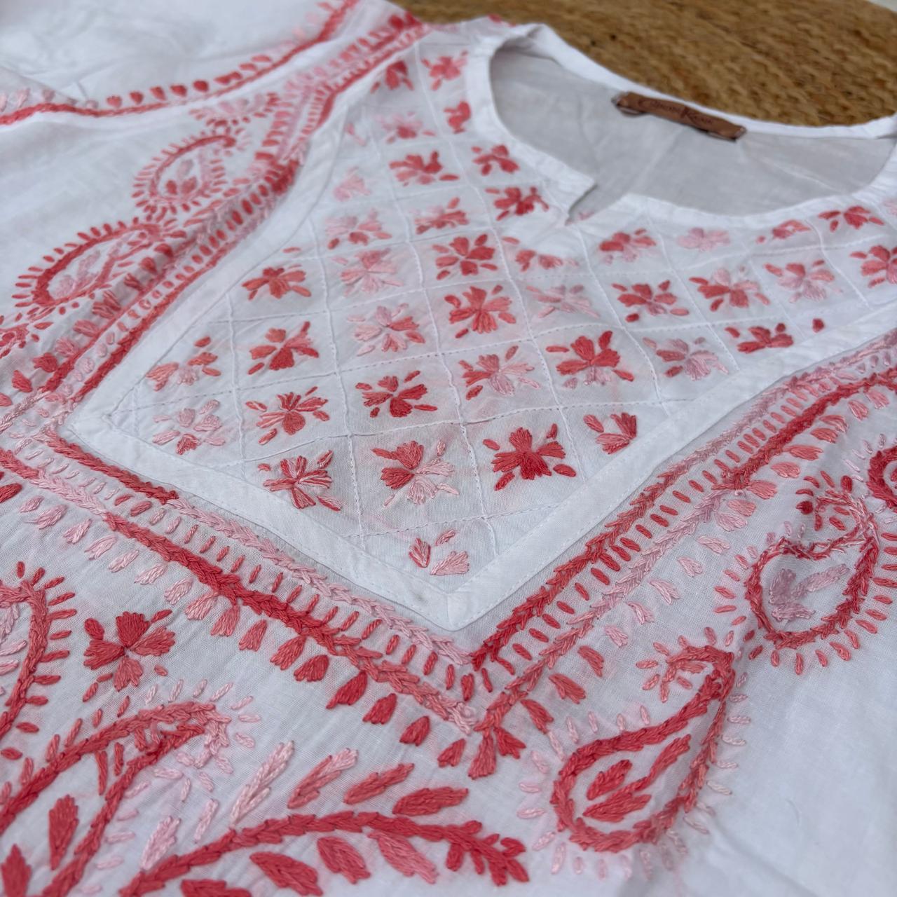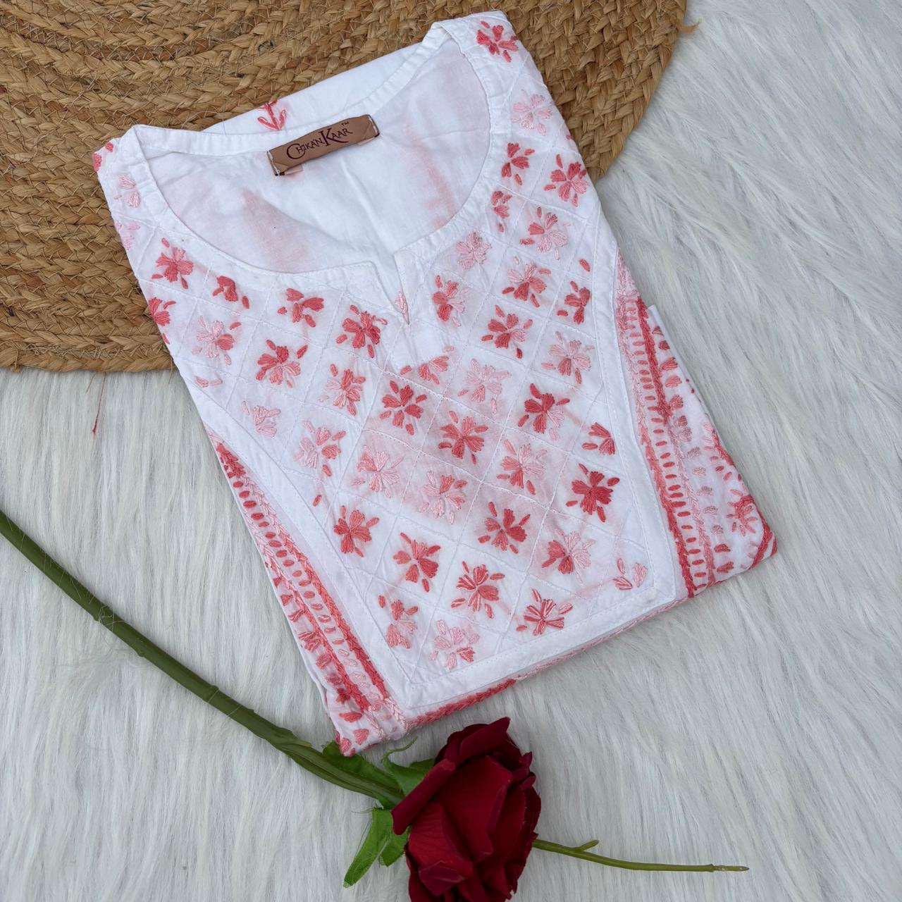 Zoya Cotton Lucknowi Chikankari Kurti - White Gazri Color