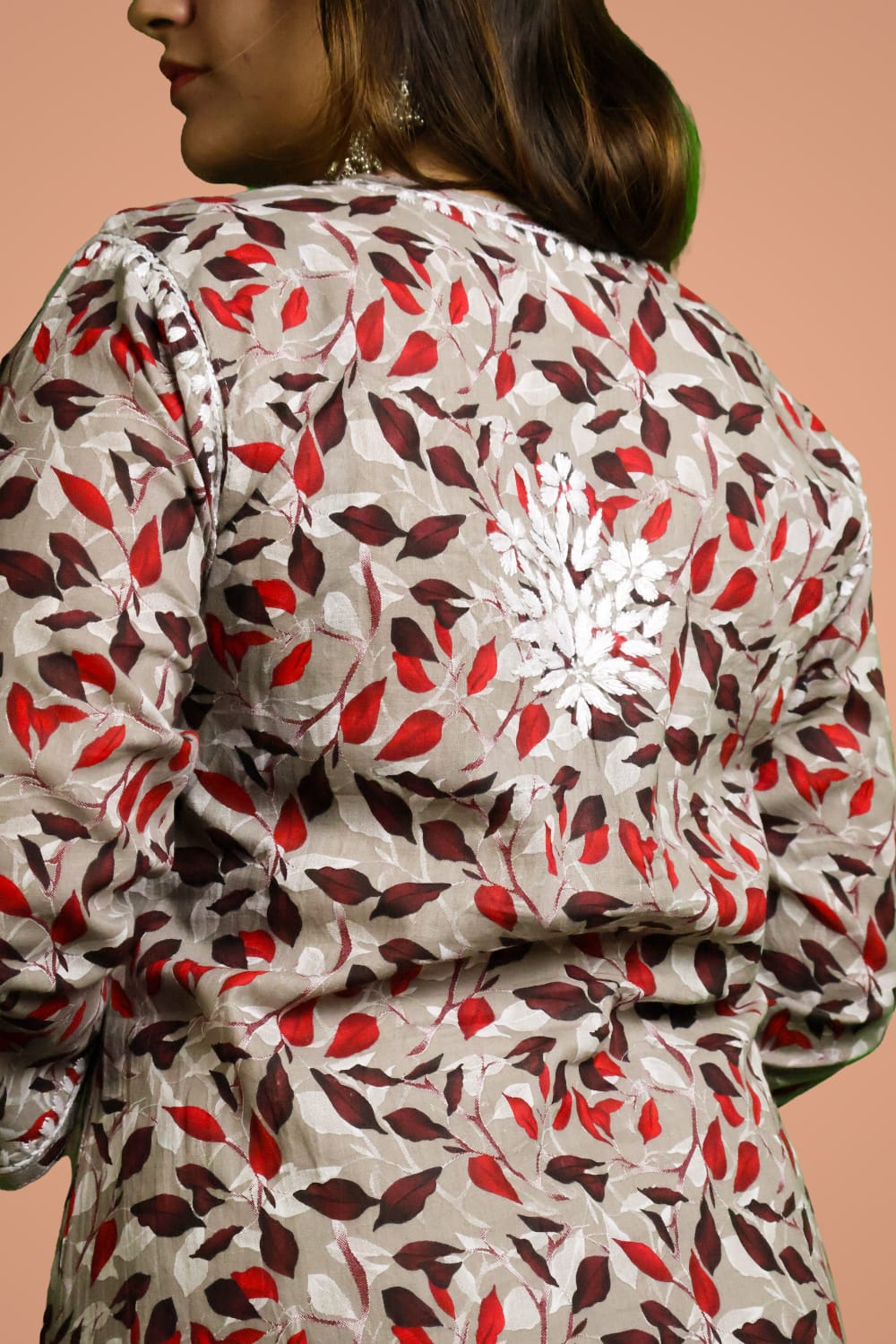 It's perfect for casual outings and can be dressed up or down effortlessly. With its comfort and aesthetic appeal, this floral-printed Mulmul Chikankari Kurti is a must-have for fashion-forward individuals.