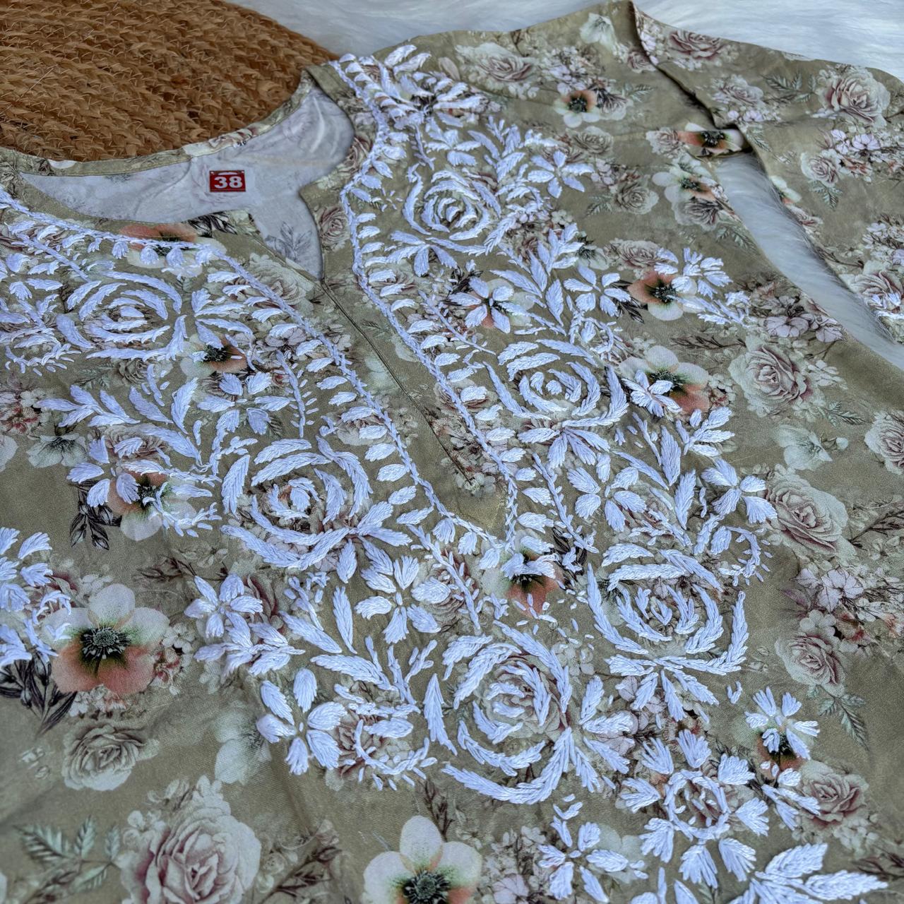 Elegant Soft Rayon Rose work Lucknowi Chikankari Kurti 💕